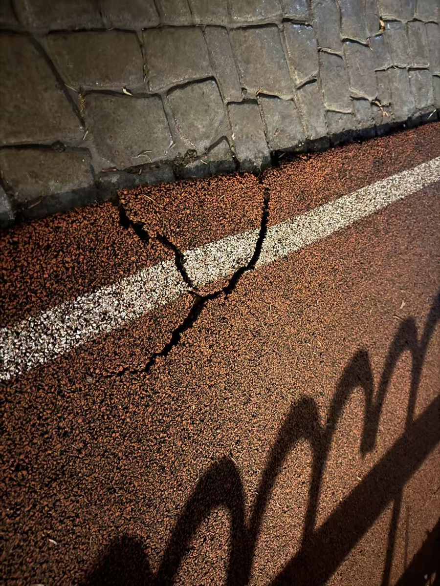 近日,有市民向“新民帮侬忙”反映,位于杨浦区苏家屯路的一处市民健身步道,由于年久失修路面开裂,多处塑胶跑道与周边地面形成明显高度差,给周边来此健身的居民带来不便。尤其是夜间光线不足视野不清,安全隐患较为突出。